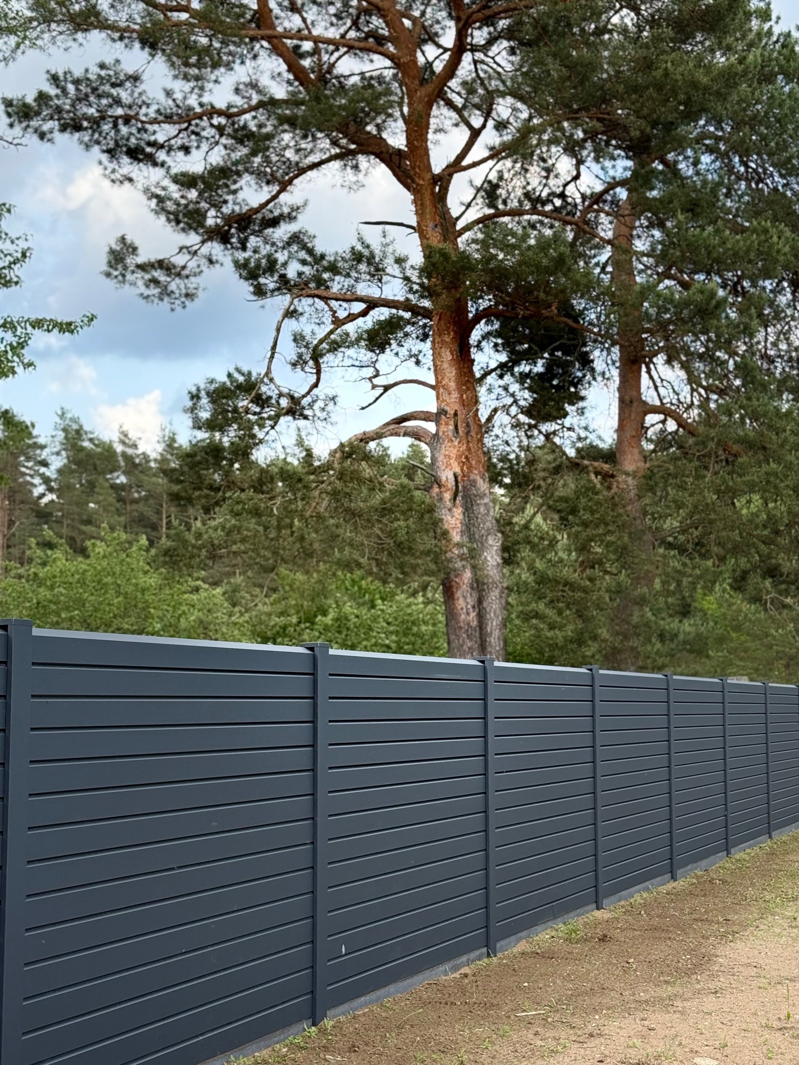 Rombo formos lamelės, montuojamos pakankamai tankiai, kad sukurtų privatumą – nei iš kelio, nei iš kaimynų pusės nesimato Jūsų kiemo.